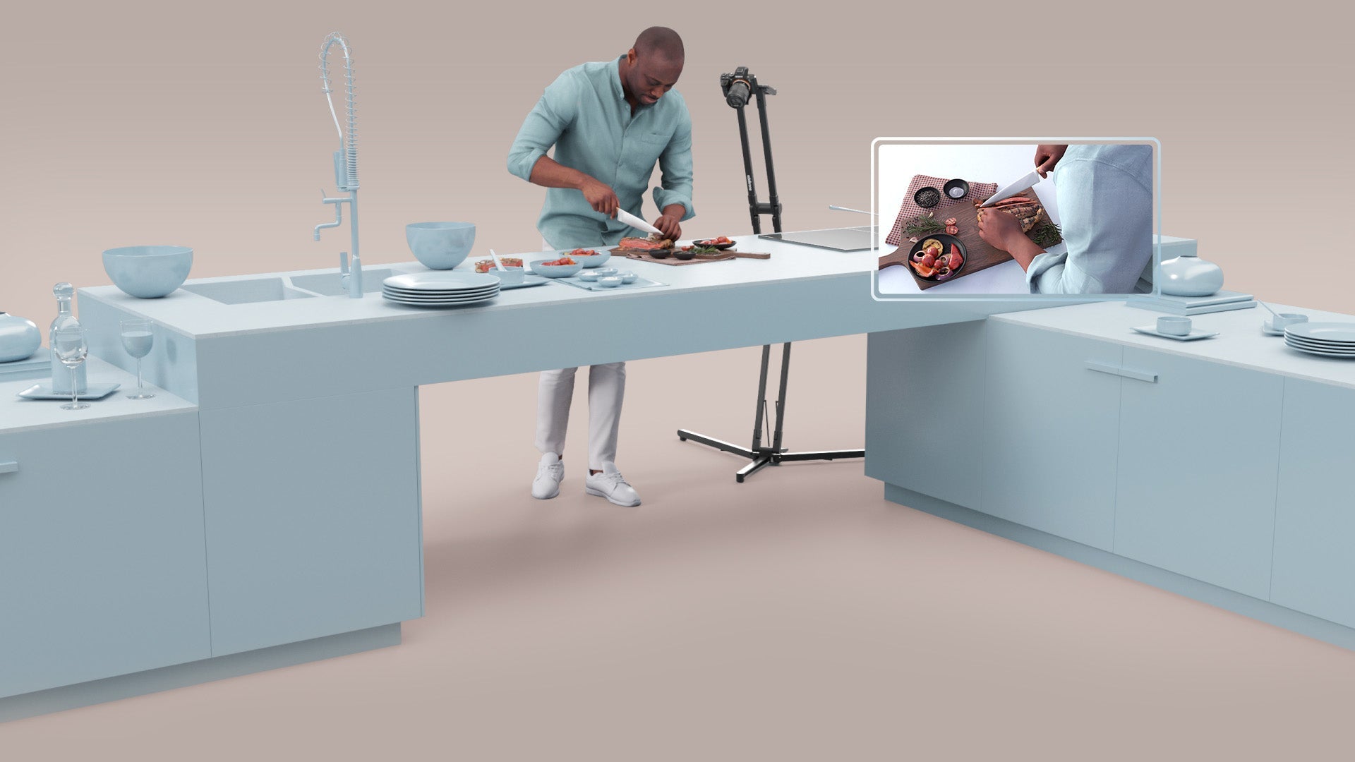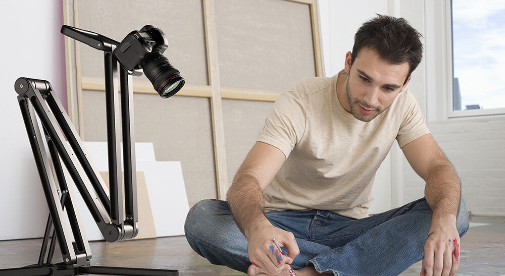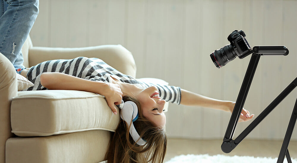 Aufnahmen von oben sind unerlässlich, um in die Szene einzutauchen und Ihrem Publikum zu zeigen, woran Sie arbeiten. Mit klassischen Stativen ist das nicht möglich.