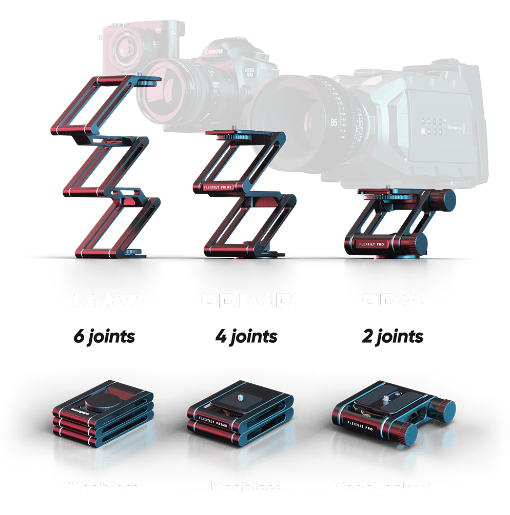 PRO: The only FlexTILT model with knobs to significantly increase carrying capacity for heavy PRO cameras.