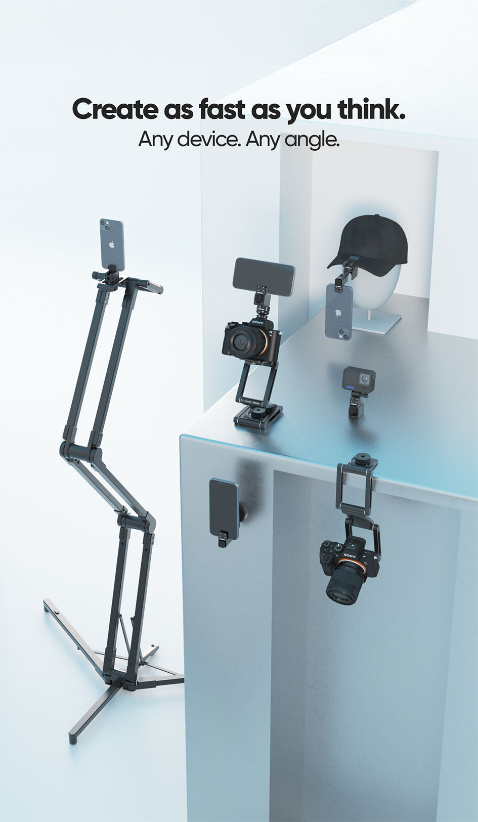 Everything you need to mount, position, and shoot with any camera or phone—instantly.