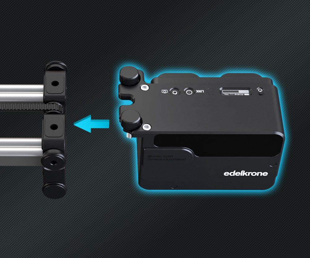 Das Motormodul wird mit der edelkrone-App oder dem Controller gesteuert und kann an alle SliderPLUS-Modelle angeschlossen werden.
