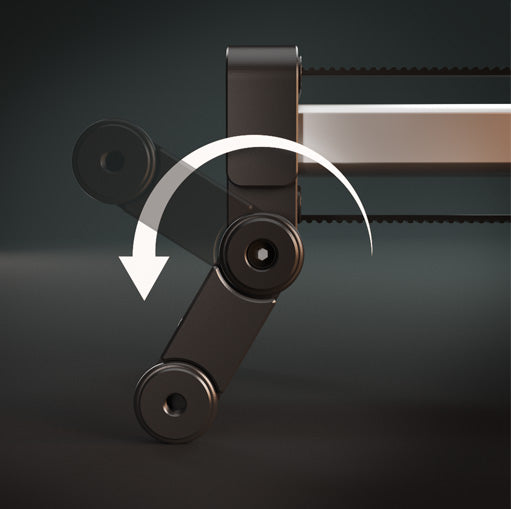 Die Schienen des SliderPLUS bewegen sich mit der Kamera und bieten Ihnen so die doppelte Reichweite im Vergleich zu herkömmlichen Slidern derselben Größe.